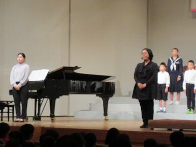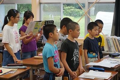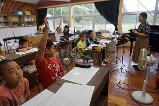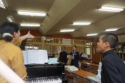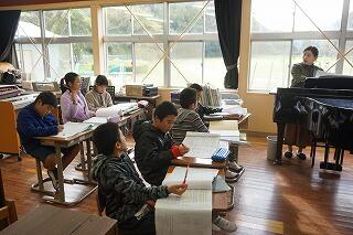 まずは2~4年生の音楽です。ピアノの演奏に合わせてみんなで歌を歌っていました。校内に元気な歌声が響いていました。