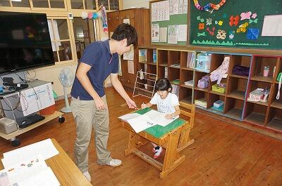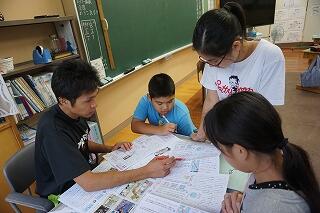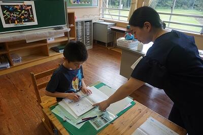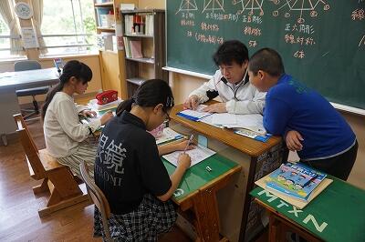 中学1年生は数学の学習。マンツーマンで丁寧に教えてもらっていました。