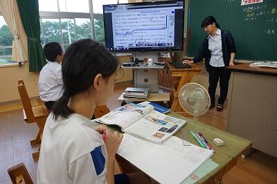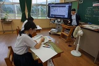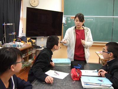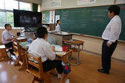 中学1年生は数学の授業で発表したり考えを出し合ったりして学習内容の理解を深めていました。