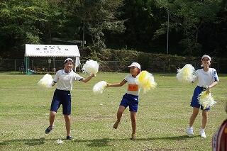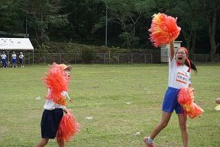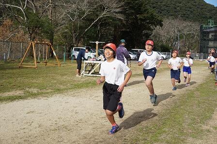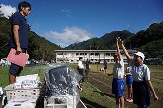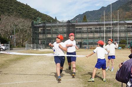 仲間の声援を受けながら、一生懸命運動場を走ります。