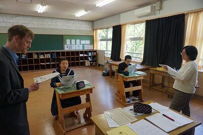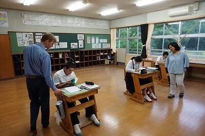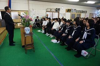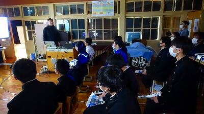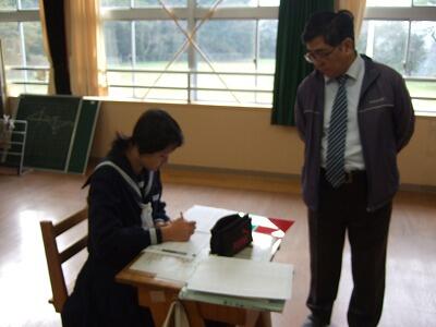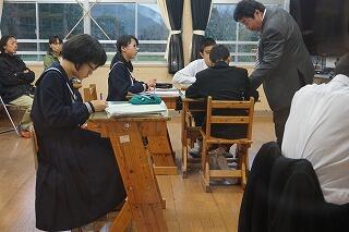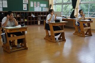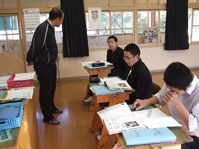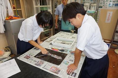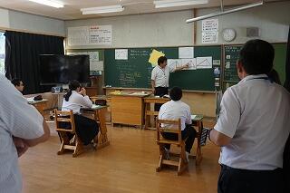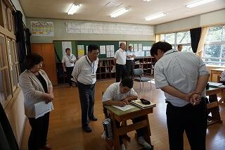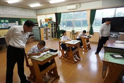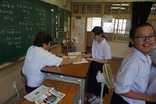 中学校2年生は数学「一次関数」と理科「無脊椎動物のなかま」の学習をみていただきました。2次関数は難しい問題でしたがよくできていました。イカの解剖は興味深く真剣に取り組んでいました。