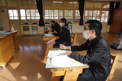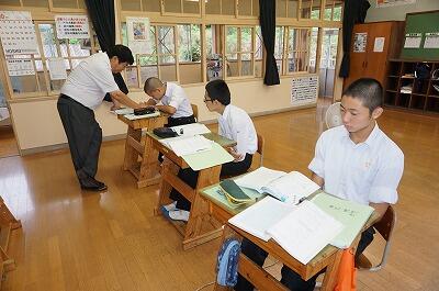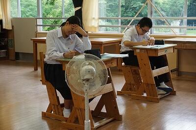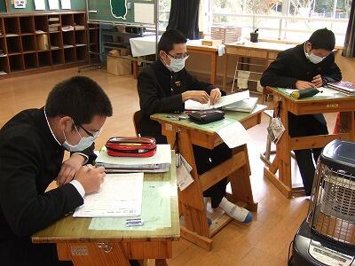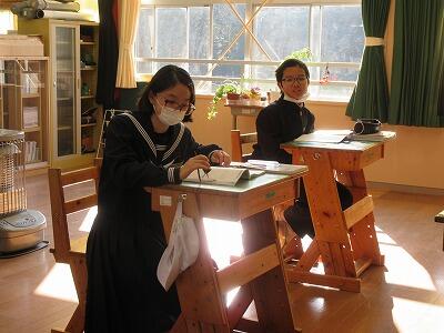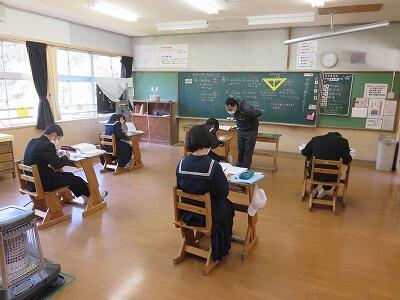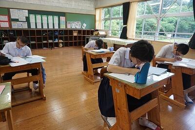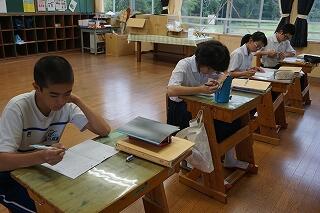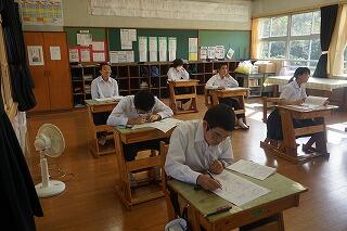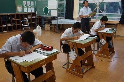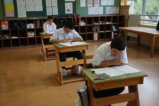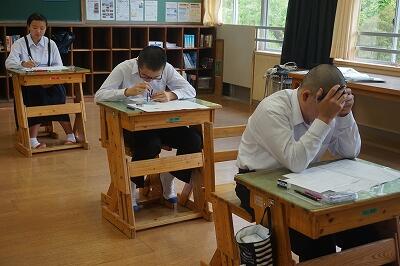 中学3年生の国語です。実力テストに真剣に取り組む様子が見られました。