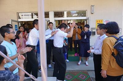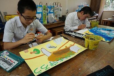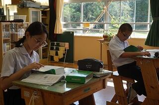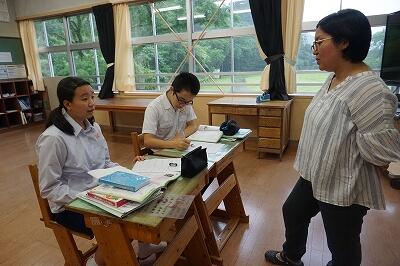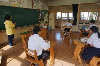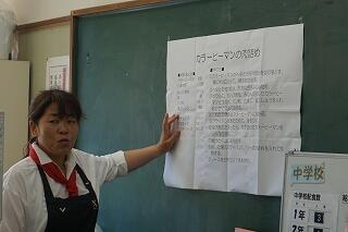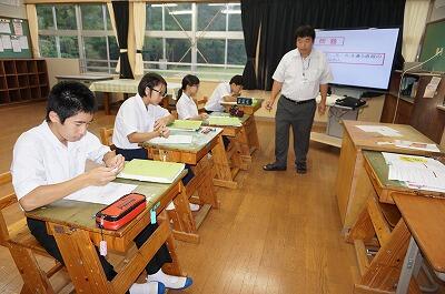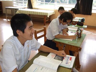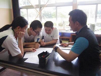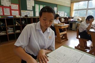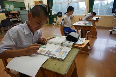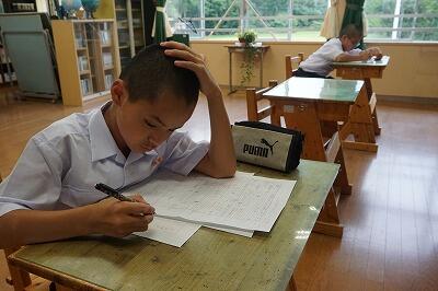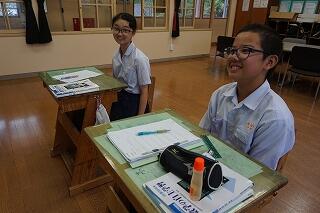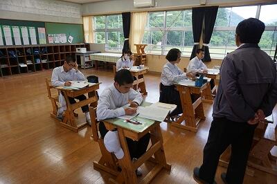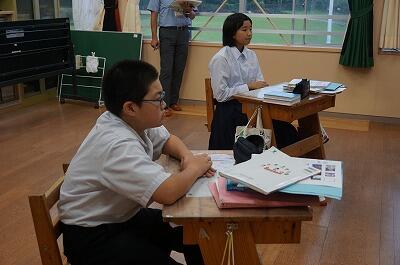 中学校3年生は理科で力学について学んでいました。2年生は担任の先生の数学で、二次関数の学習をしていました。1年生も担任の先生の英語を一生懸命学び取っていました。