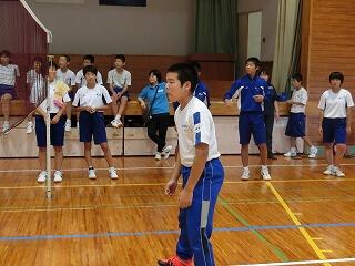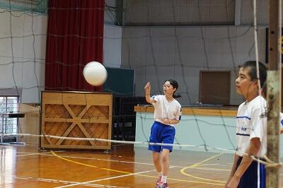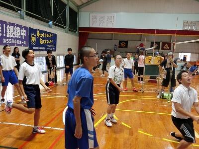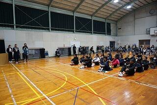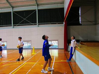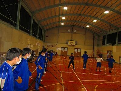 室内で、穂北中と銀鏡中の合同ミニバーボール大会となりました。