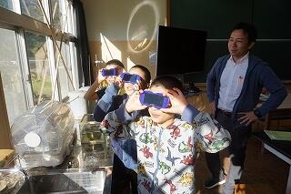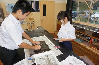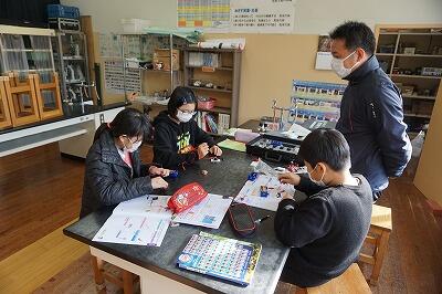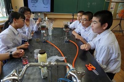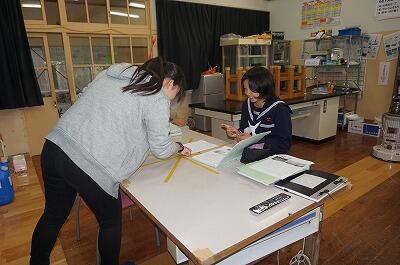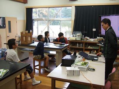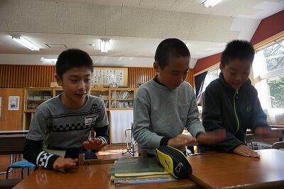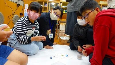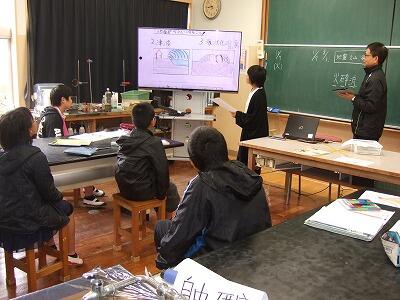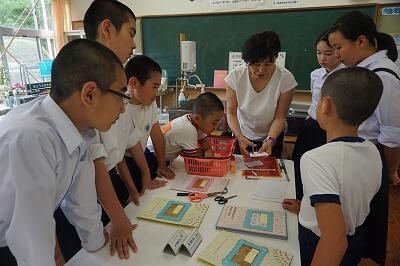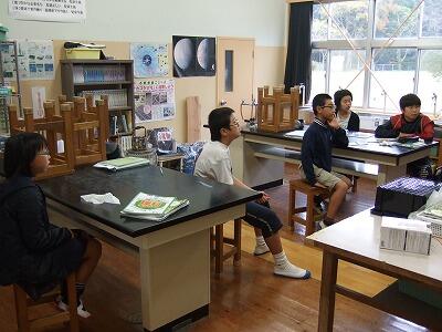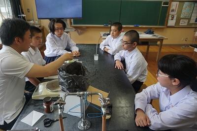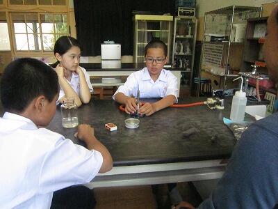 次に小6と中2の理科です。今日は特別に小中合同で行いました。中学生に教えてもらいながら、仲良く話し合う様子が見られました。