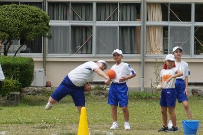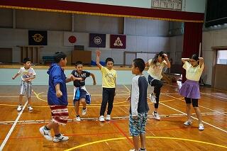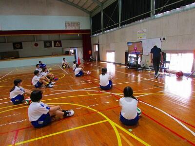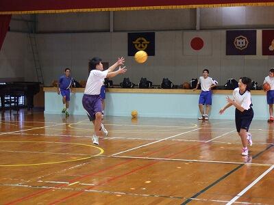 中学生はバスケットボールを行いました。始めた頃よりも動きやパスがとても良くなりました。ゲームの中ではドリブルやシュートのタイミングなど、まだまだ課題もありますが、自分たちでルールを改善しながら楽しくゲームに取り組んでいます。