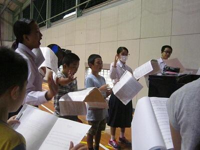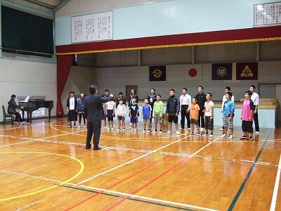 今日の3時間目に小中合同の音楽が行われました。11月に行われる文化祭や音楽大会に向け体育館で練習を行いました。