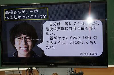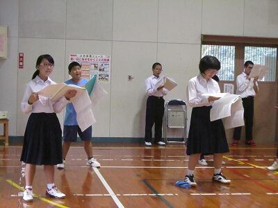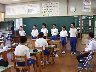 中学生も頑張りました。1年生は音楽で伝統芸能の歌舞伎「勧進帳」の学習をしました。