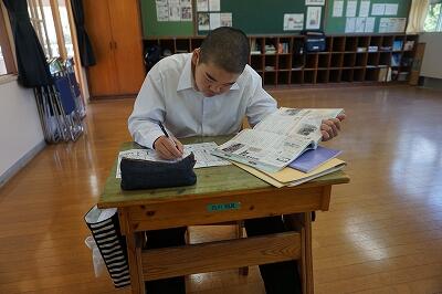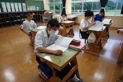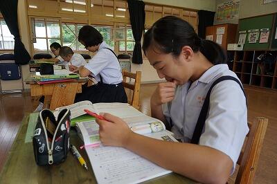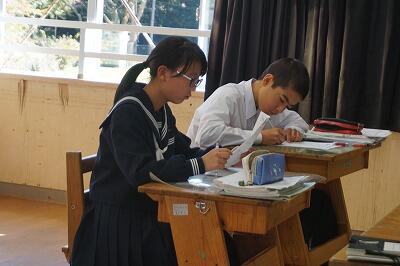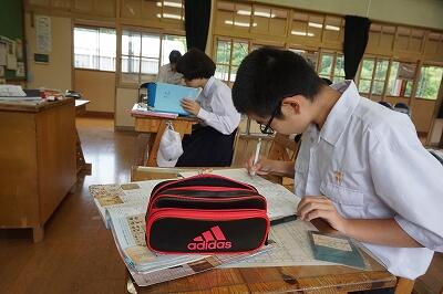 中学1年生は国語の漢字の読みや書き、社会でアメリカの企業について学習していました。