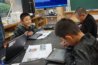 6年生は、山村留学のよさについてビデオにまとめる作業をしていました。自分たちの経験を分かりやすく伝えることができるでしょうか。