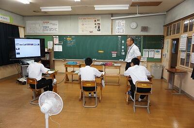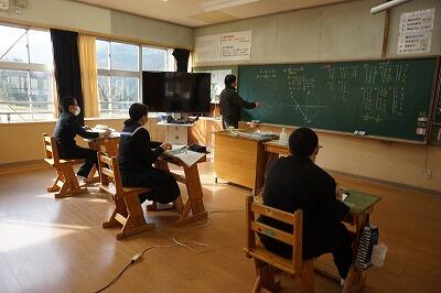 中学3年生は、数学の問題を解いたり、ALTのビーノと一緒に英語の学習をしたりして楽しく学習に取り組みました。