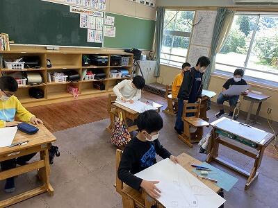 小学1年生は生活科でドングリを拾いました。松ぼっくりも拾いたかったのですが松の木は近くにないようです。3・4年生は算数の勉強を頑張っていました。5・6年生も理科や社会の勉強をしっかり頑張っていましたよ。