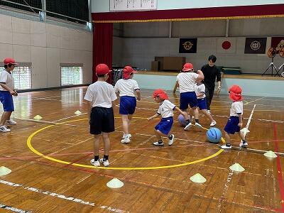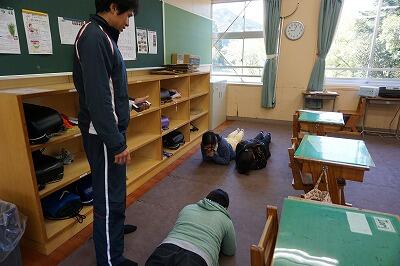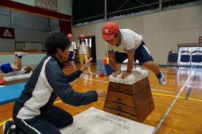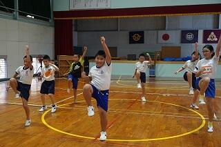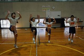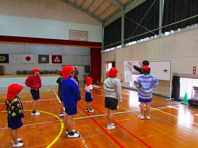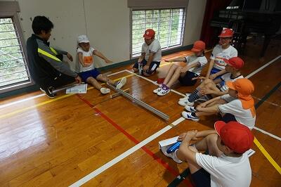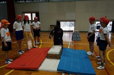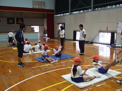 また、体育ではマット運動も小学生みんなで頑張っていました。