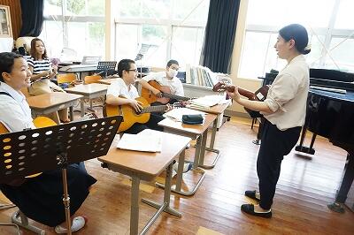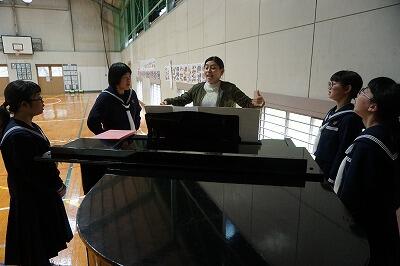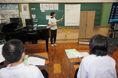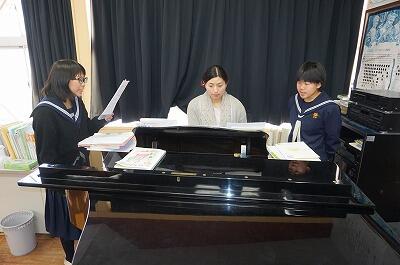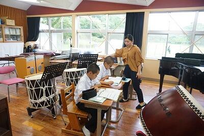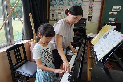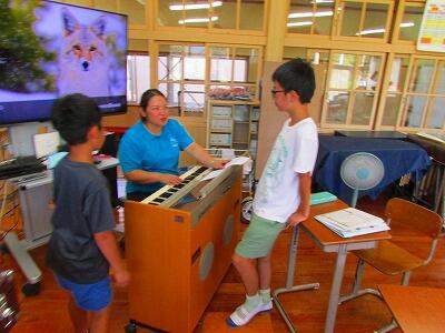 2年生の音楽は一人ですが、ピアノのひき方を丁寧に教えてもらっていました。