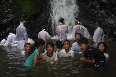今回の山がっこ銀鏡は滝行に参加しました。前日の雨の影響で水かさが増していましたが、その冷たい水にも負けず、みんな元気に滝行を頑張っていました。子どもたちの顔の表情から冷たさが伝わってきます。滝行も、これからますます寒くなっていくそうです。