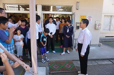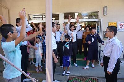一人ずつ氏名点呼があり、手を挙げて大きな返事をします。