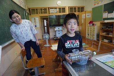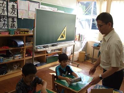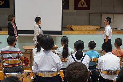 雨のしとしと降る薄暗い日でしたが、子どもたちは笑顔満点で授業に臨んでいました。