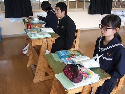 中学1年生の国語です。物語文の朗読を聞いています。内容を捉えようと一生懸命聴いていました。