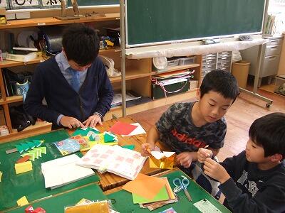 小学1・3・4生はクリスマスの飾りづくりを楽しく行いました。