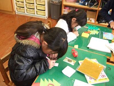 5・6年生は自分の名刺づくりを行っていました。アイデアいっぱいの素敵な名刺ができあがってよろこびいっぱいの子どもたちでした。
