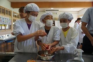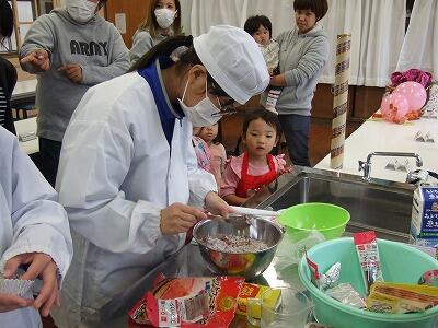 今日は幼児教室があって,中学校3年生が子どもたちのお世話をして楽しく遊んだりおいしいお菓子を作って一緒に食べたりと楽しく過ごしていました。
