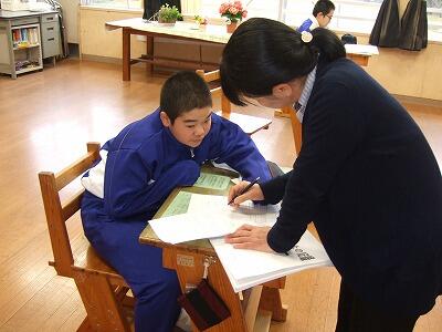 中学校3年生は国語「文法の窓」と社会「これからの人権保障」の学習をみていただきました。分かりづらい文の原因や尊厳死など難しい学習問題をしっかりと考えていました。