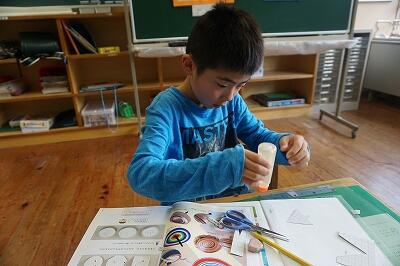 小学2年生の生活です。紙コップや牛乳パックを使って工作しています。何が出来上がるのか楽しみですね。