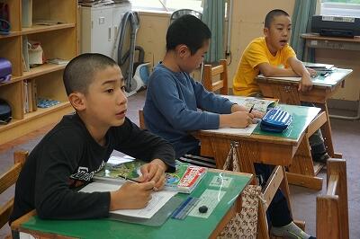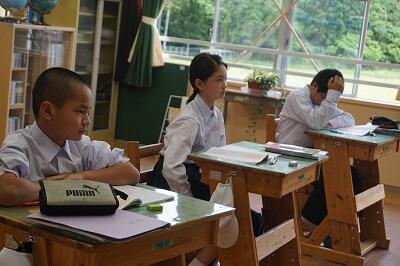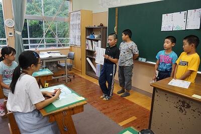 小学3・4年生は国語の授業で話し合いの仕方の学習に真剣に取り組んでいました。