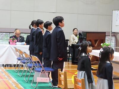 まずは、小学生の卒業生を送る会からー