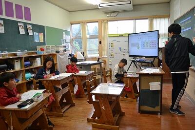 小学5年生、算数の授業の様子です。今日は、小学3年生も飛び入りでいっしょに学習しました。