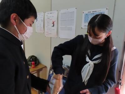 中学校1年生の音楽の授業です。卒業式の歌の練習をしました。