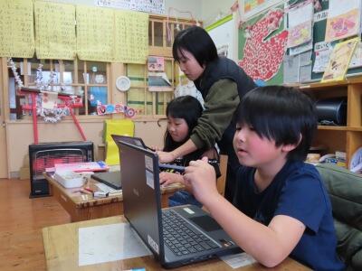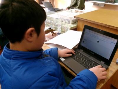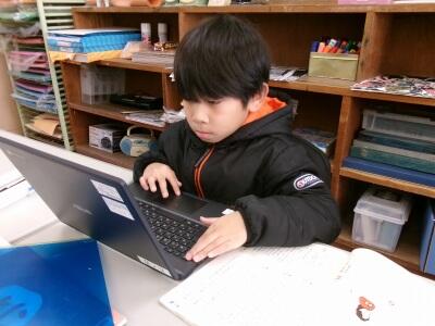 国語の授業。習ったローマ字を使って、パソコンで物語を書きました!