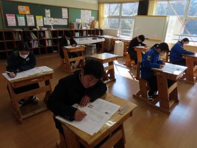 中学3年生の様子です。国語の授業で「卒業短歌づくり」に取り組んでいました。