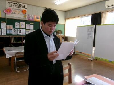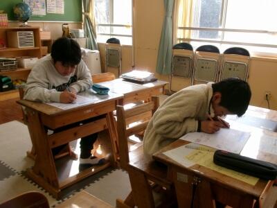 立志式の準備です。発表原稿は、暗記する模様・・・真剣な眼差しです。