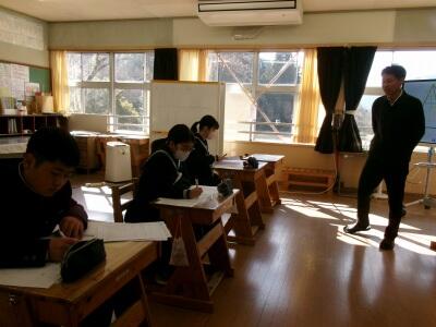 中学3年生 理科 実力テストや入試に向けての心構えについてよく耳を傾けていました。