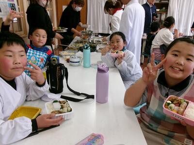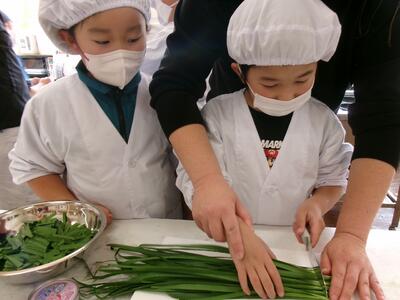 小学2年生は、先日収穫した大根を使って、大根パーティーをしました。大根葉のふりかけ、大根ステーキ、大根の炊き込みご飯、大根のすまし汁、大根の柚子漬けを作りました。とっても美味しくできました。