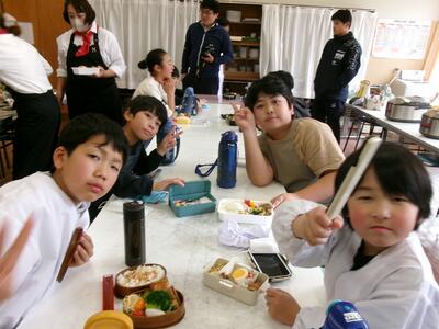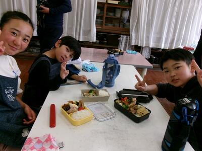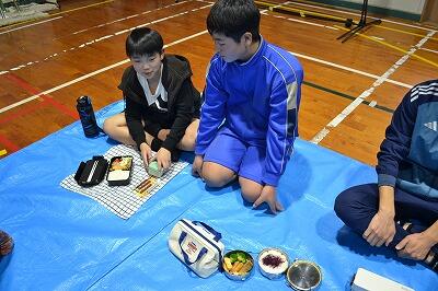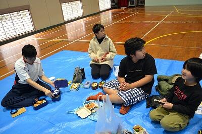 そのあとは教室のワックスがけを行った後、体育館でみんなでお弁当を食べました。