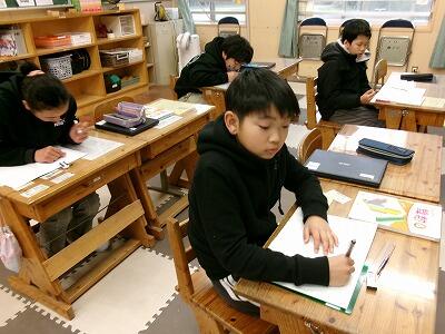 国語科の「書く」活動です。3年生になると書く量がぐっと増えますね・・・自分たちの町について構成メモをもとに、紹介文を書きました。とっても集中しています!銀鏡の町を、どんなふうに紹介してくれたのかなぁ?