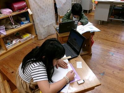 6年生の様子です。タブレットを活用して、復習問題に取り組んでいます。