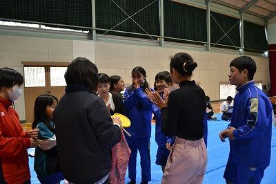 ○×クイズ、人間知恵の輪、フリースロー大会を先生方も交えて行いました。