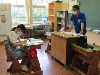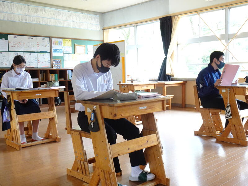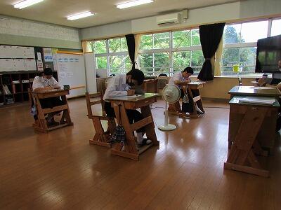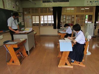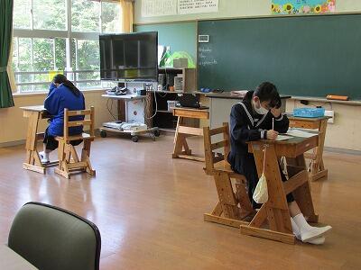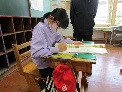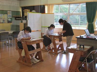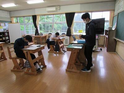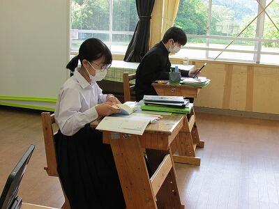 中学1年生の社会の様子です。「世界の姿」と「日本の姿」の学習内容の単元テストを行いました。二人とも目標に向かって頑張って取り組んでいました。結果が楽しみですね!