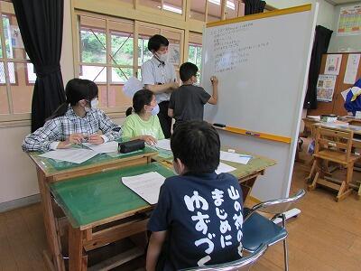 小5・6年の道徳です。「ぼくらの村の未来」という題材で、自然愛護か郷土愛かを考えさせる学習をしました。
