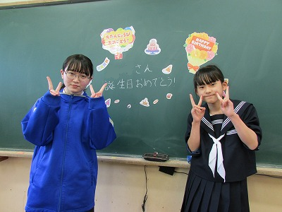 小学校5・6年生は英語の授業で、ALTの先生と一緒に日付の言い方について学習しました。有名人の誕生日を英語で答えたり、自分の誕生日を英語で言ったりしました。授業の後には、学級担任の先生に誕生日を英語で尋ねていました。