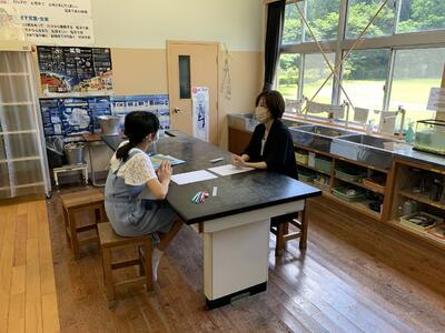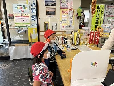 小学1・2年生の生活科の様子です。町探検で山の駅、郵便局、JAに行きました。それぞれが準備してきた質問を、職員の方に答えていただきました。