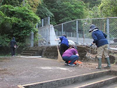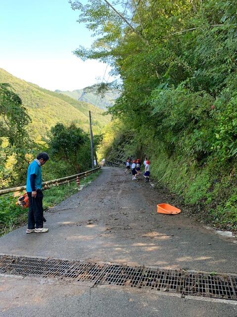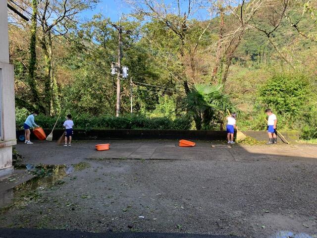 通学路の土砂を取り除いたり、学校の落ち葉や枝を掃除しました。