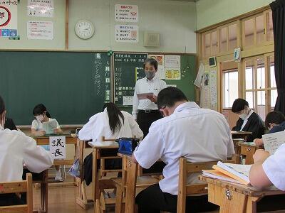 中学3年生の国語の授業では、実力テスト対策をしました。問題で問われていることを確認して、答えの作り方を考えました。