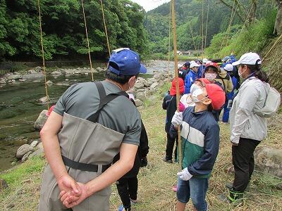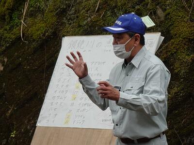 地域の方に、銀鏡川の生物について話をしていただきました。