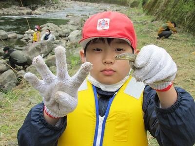 1時間も経つと、あちこちで「釣れました!」と元気な声が聞こえてきました。アブラハエやヤマメなどの魚が釣れました。