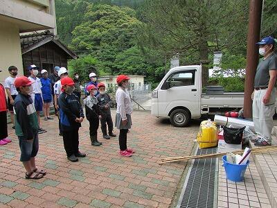 昨日はプール清掃でした。旧小学校(現東米良仁の里)の横にあるプールまで移動し、縦割り班ごとに分担して掃除をしました。来月13日(月)にプール開きがあります。
