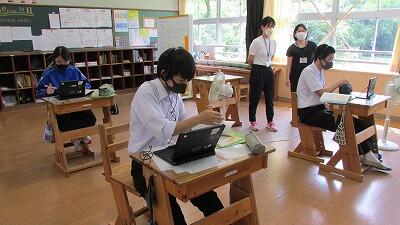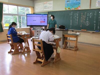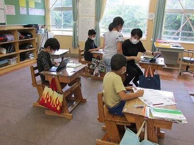 小学2・5年生は、国語で新しい漢字の学習を順調に進めています。タブレットのドリル機能を使ってきちんと覚えているか確認しました。
